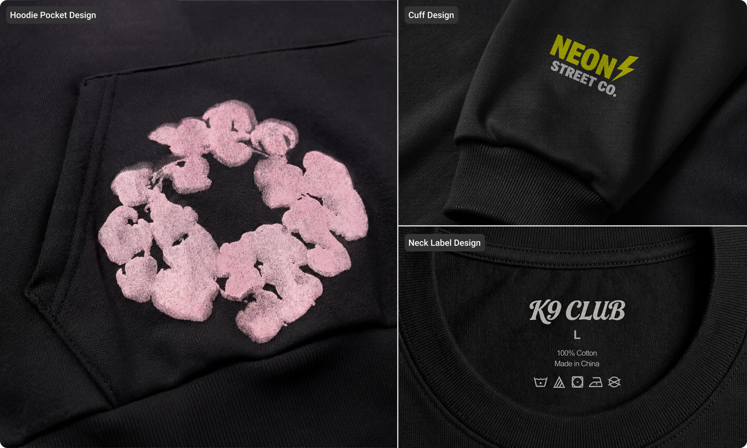 Retail brands don't just print on the chest. They utilize sleeves, pocket, and hems to tell a complete story. Multi-placement designs signal quality.